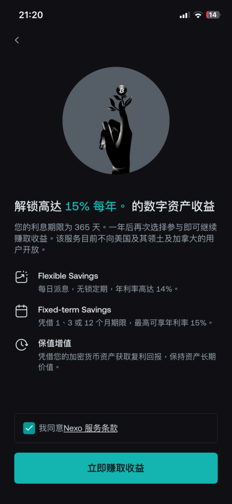 Nexo 提供的高利率確實是吸引我使用的主要原因之一,在高波動的加密貨幣市場環境下,能有這樣無限額的穩定收益,對於產生被動收入非常有幫助。