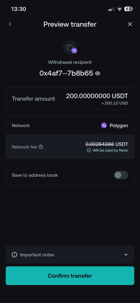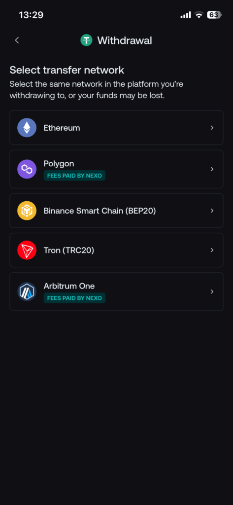 Nexo 在穩定幣方面的便利性,不論是入金還是出金都非常方便,特別是提取穩定幣時完全不需要支付手續費,這對於頻繁調整資產配置的用戶來說是一大優勢。
